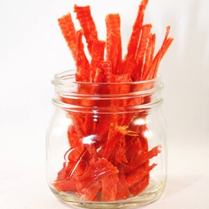Dehydrated watermelon is the perfect on-the-go summer snack! Slice in thin strips for Twizzler-like healthy candy, in big slices for a tearable treat, or in small cubes for handheld gummies.